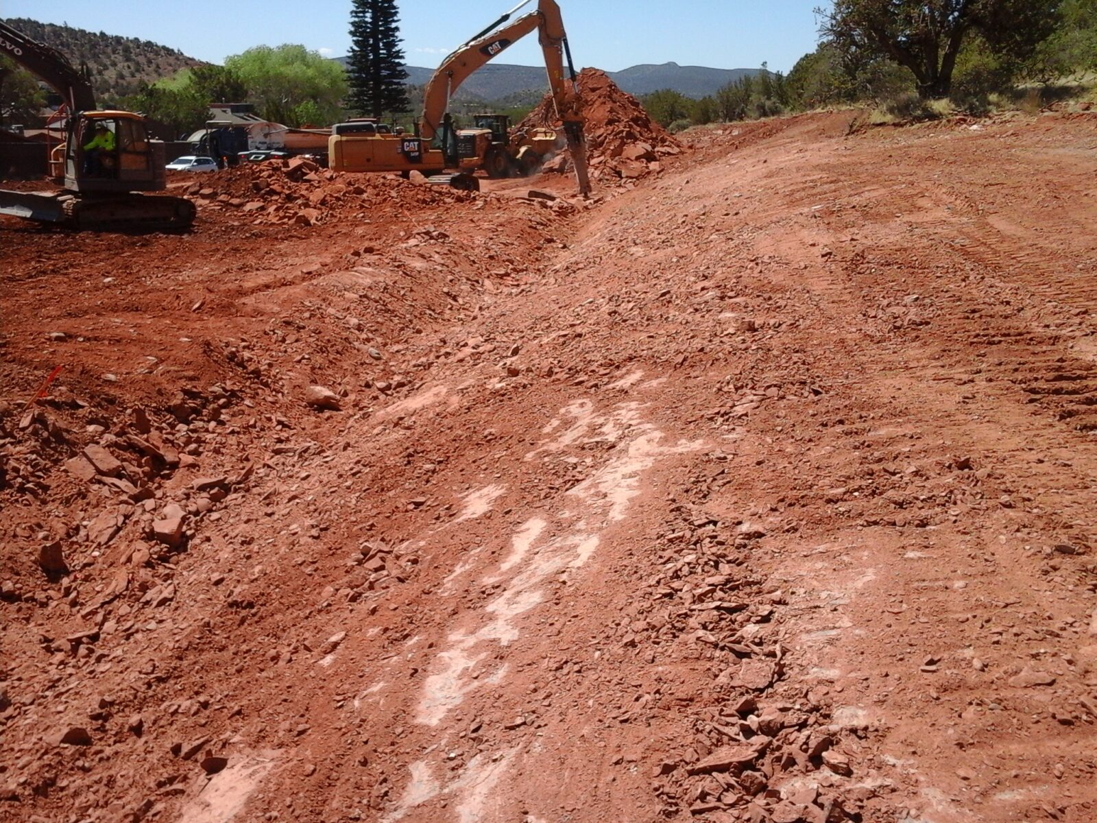 The work consisted of building 10 new pads in Sedona, Arizona. The excavation was performed in Rock and required the use of hammers for the building pads, as well as the detention basin and utilities.
